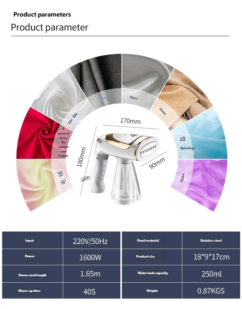 1. This type of ironing machine adopts the upgraded 1600W high-power, continuous steam, can fast and high-quality ironing clothes.